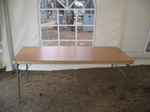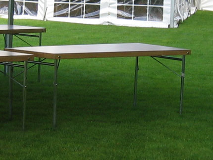 Stadigt hopfällbart bord tillverkat i trä med metallben