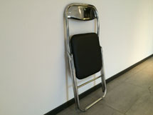 Smidig klappstol med svart mjuk sits och kromad benställning.