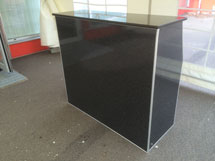 Delbart ståbord med skiva i mörk trälaminat och kromad benställning.