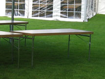 Förhöjt hopfällbart bord, tillverkat i trä med ben av metall. 180x70cm och 100cm i höjd