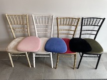 Vita stolsöverdrag till våra kläddastolar i blått.