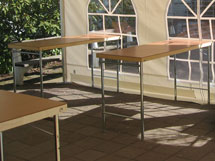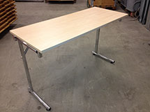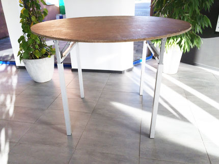 Stadigt hopfällbart bord, tillverkat i trä med ben av metall.