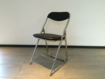 Smidig klappstol med svart mjuk sits och kromad benställning.