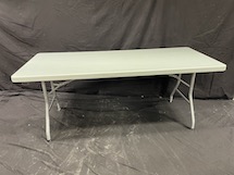 Stadigt hopfällbart bord, tillverkat i plast med ben av metall.