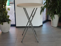 Ihopfällbart ståbord med hårdplast skiva och metallben.