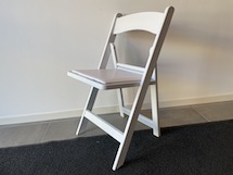 Snygg stol i vitt, mjuk sits.