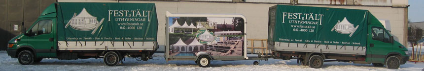 FESToTÄLT etablerades 2004 och har sedan dess hyrt ut tält och festtillbehör i Helsingborg med omnejd. Med mångårig erfarenhet från tältbranschen vet vi vad som behövs för att göra en fest till en succé. Vi har alla produkter som behövs som tält, bord, stolar och porslin, men även sådant som Ni kanske inte har tänkt på som kylskåp och värmefläktar. Dessutom har vi mattor, kristallkronor och loungemöbler som gör det mer personligt. Sedan 2011 finns vi i nya, större lokaler, men är fortfarande lätta att hitta och komma i kontakt med. |