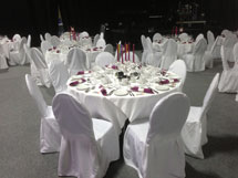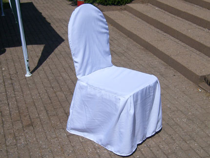 Vita stolsöverdrag till våra kläddastolar i blått.
