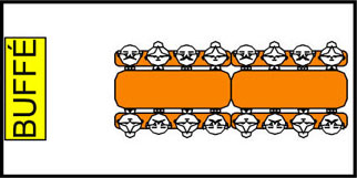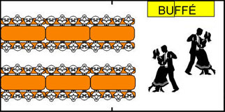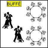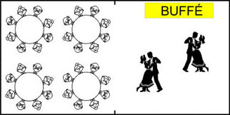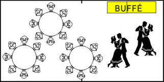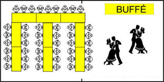 1st 180x70cm och, 1st 120x70cm bord för buffé och dans yta |