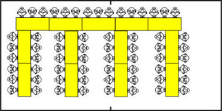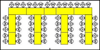 Möblerat med 9st 180x70cm bord och 45 stolar i honörssittning