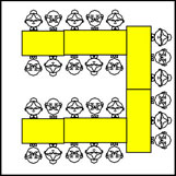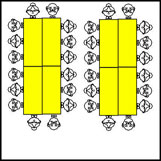 Möblerat med 4st 150cm och 32 stolar