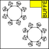 Möblerat med 2st bänkset och ett 180cm bord till buffé |