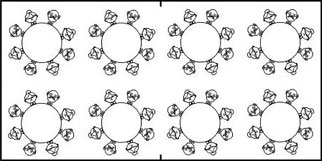 Möblerat med 2st 150cm runda bord och 16 stolar |