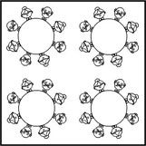 Möblerat med 4st 150cm runda bord och 32 stolar |